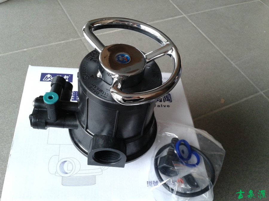 通過(guò)手動(dòng)扳動(dòng)手柄來(lái)操作軟化閥,使其水流方向按照需要變更為運(yùn)行、反洗、吸鹽、補(bǔ)水、正洗。
